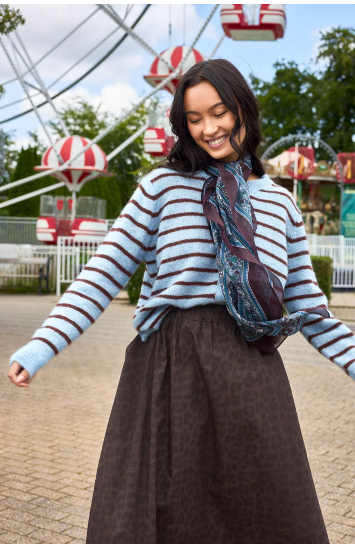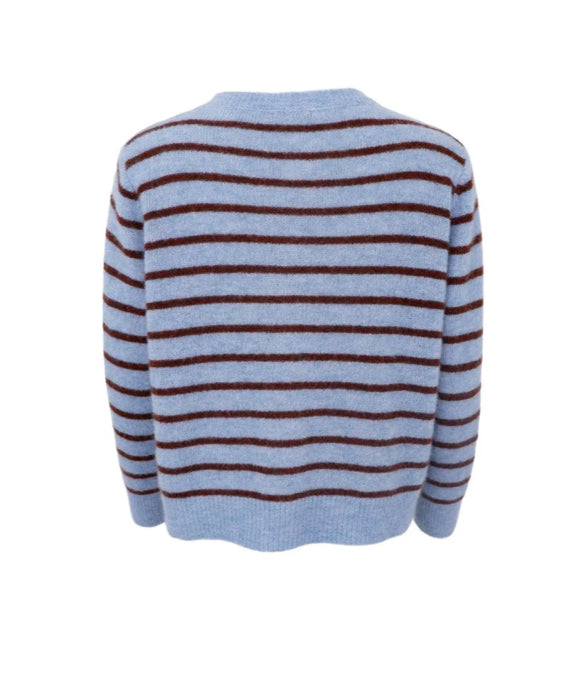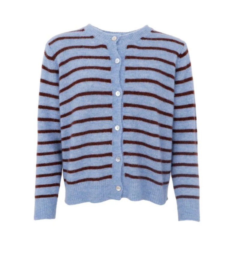 Leuk gestreept vestje met een ronde hals en kleine knoopjes. Het is een heerlijke wolmix.