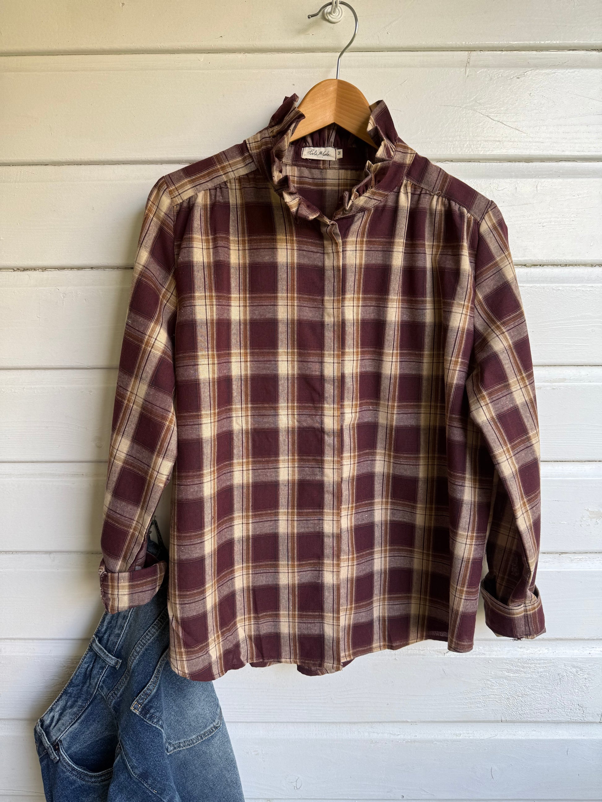 Leuke ruit blouse, doorknoop model met mooi opstaande kraagje.